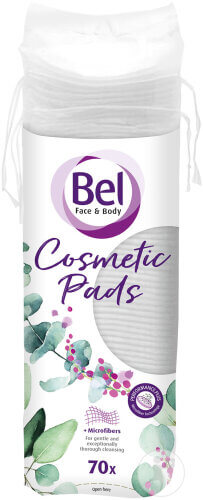 Zu jeder Grundausstattung eines Kosmetiksalons gehören die Bel Wattepads rund 70Stk. Die Pads aus Baumwolle und Microfasern sind in kleiner, runder Form hergestellt und liegen mit dem über 5 cm großen Durchmesser ideal zwischen den Fingern . Die Prägeseite der Pads ermöglicht eine außergewöhnlich gründliche und zugleich schonende Reinigung, die weichen Pads sind besonders sanft zur Haut. Das Produkt ist dermatologisch getestet.