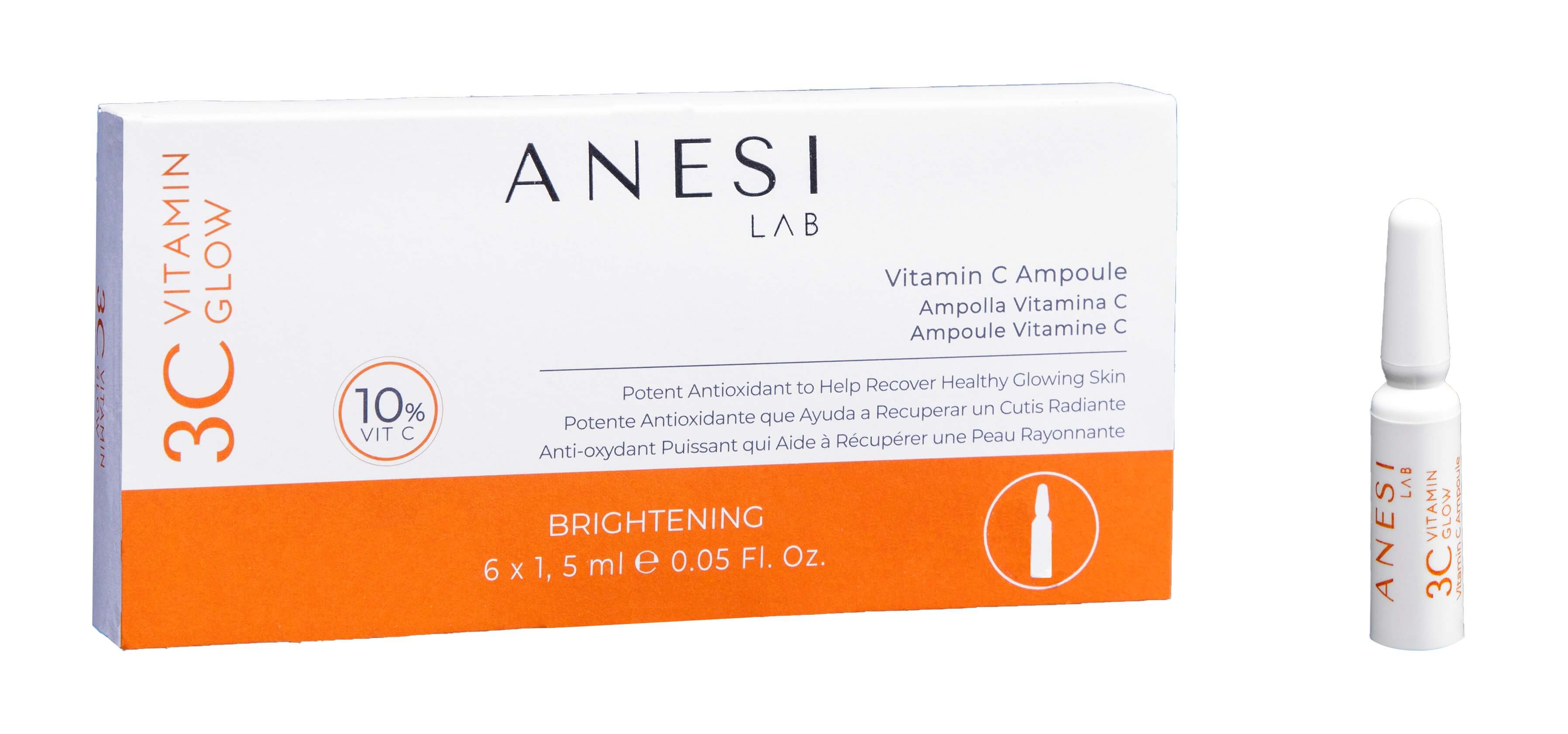 Die Anesi 3C Vitamin Glow Feuchtigkeits-Ampullen 6x1,5ml wirken als intensiver Vitamin‑C‑Energiekick.