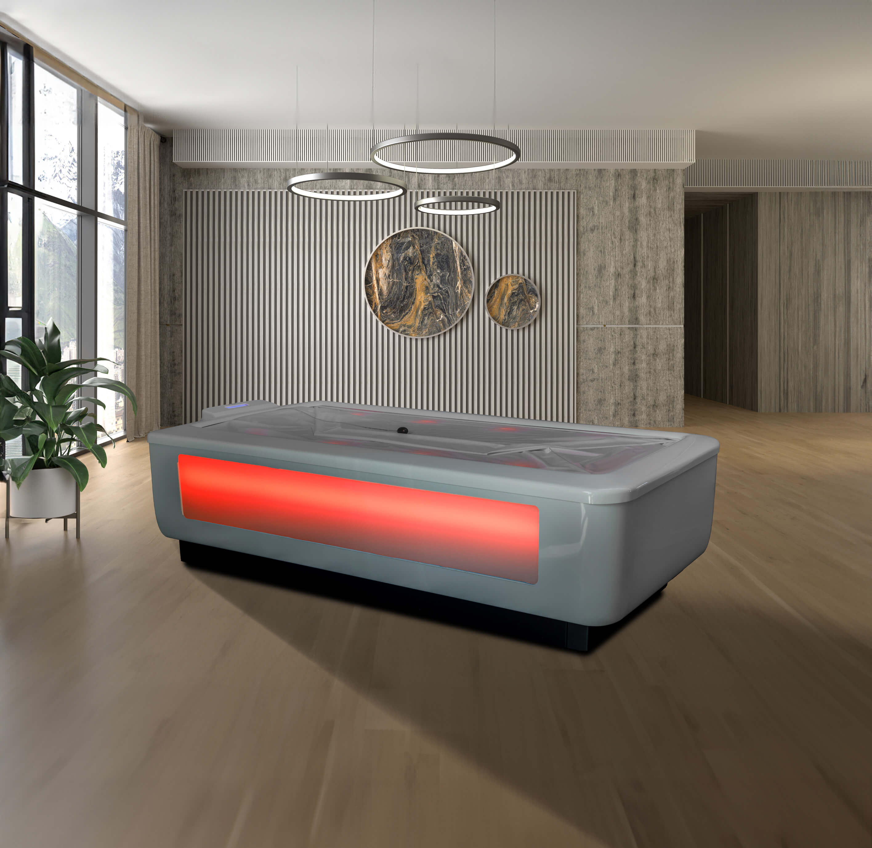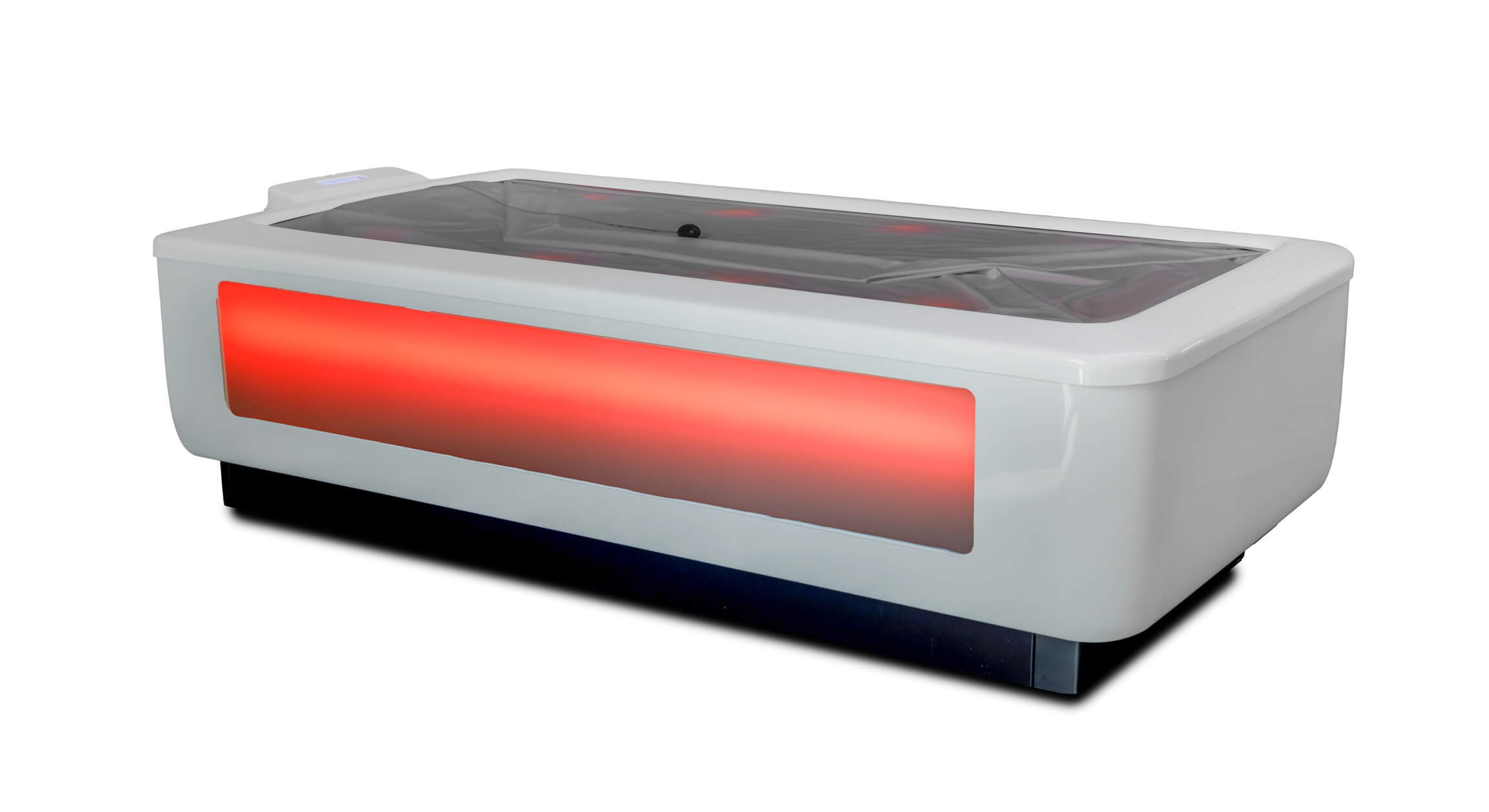 Die lichtdurchlässige Liegefläche umhüllt den Körper mit stimmungsvollen Licht. Sie besteht aus einer soften Spezialfolie, ist äußerst hygienisch und ermöglicht ein entspanntes Liegen.