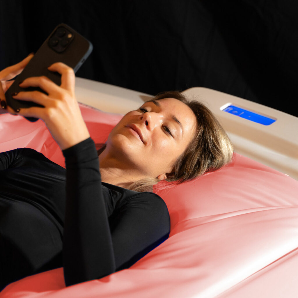 Die anschmiegsame Liegefläche und das wohltuende warme Wasser lockern die Muskulatur und fördern das Wohlgefühl.