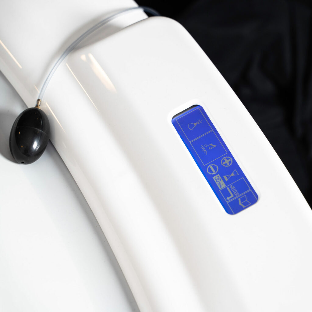 Über ein übersichtliches Bedienfeld am Kopfende, lässt sich die Liege leicht und intuitiv steuern.