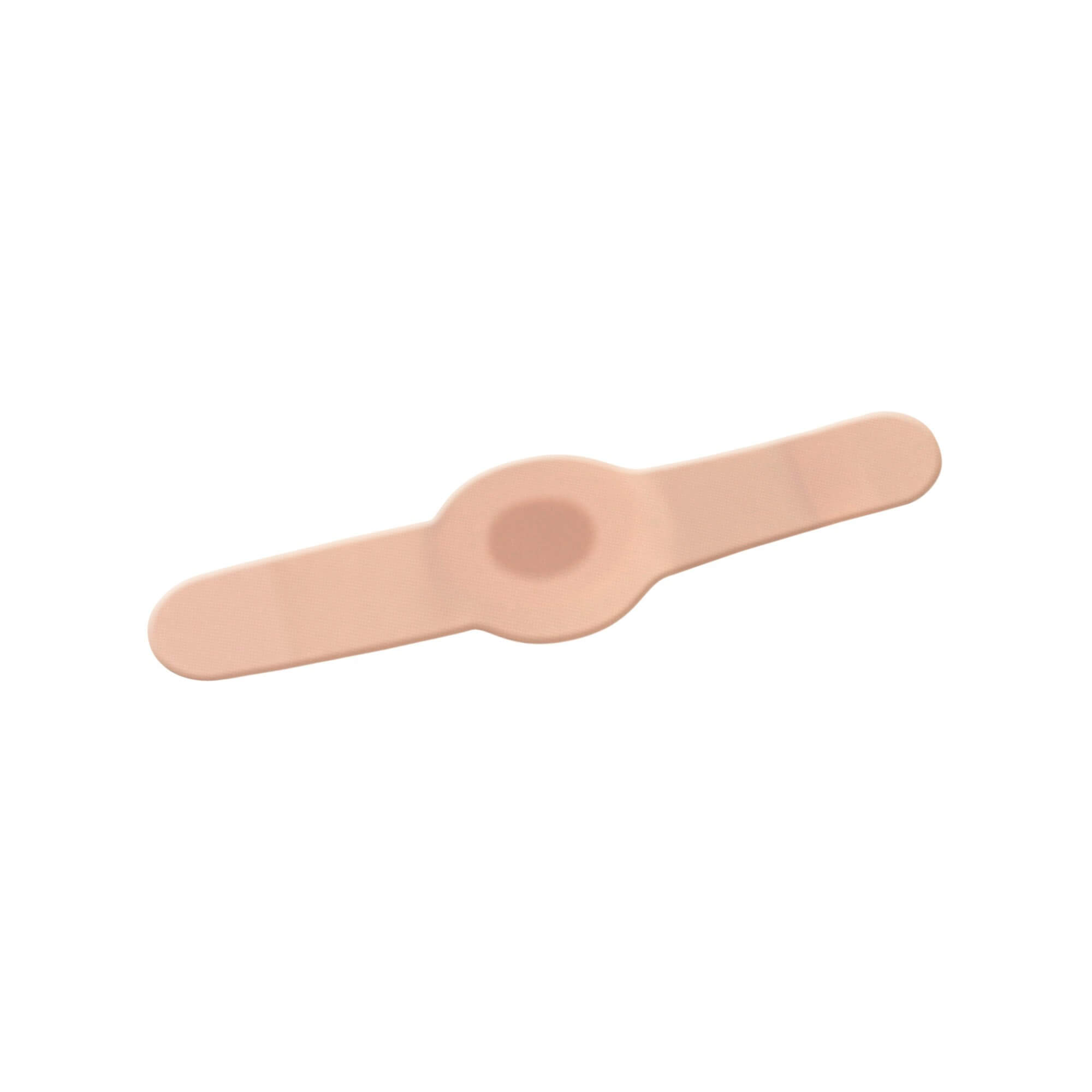 Der Hühneraugenschutz besteht aus Latex mit Klebepflaster.