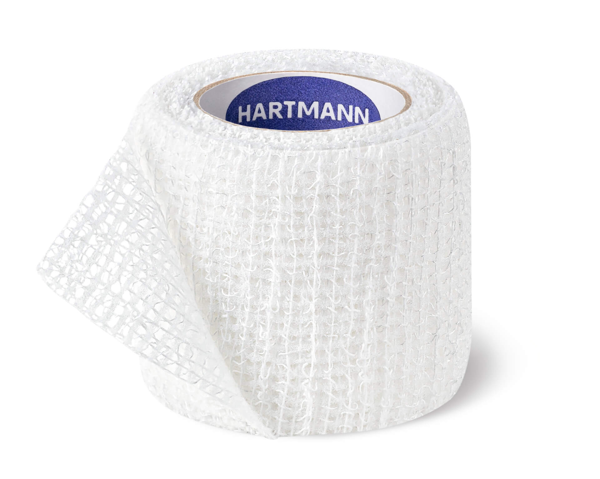 Kohäsive, elastische Fixierbinden mit zweifachem Hafteffekt durch gekreppte Gewebestruktur und mikropunktuelle Imprägnierung mit einem Synthetik-Polymer, Dehnbarkeit ca. 120 %, geringer Materialverbrauch durch starke Eigenhaftung, bereits wenige Touren ergeben eine sichere, dauerhafte Fixierung, dabei kein Verkleben mit Haut, Haaren oder Kleidung, luftdurchlässig, hautfreundlich und geruchsneutral, da acrylat- und chlorfrei. Die Fixierbinde ist latexfrei.